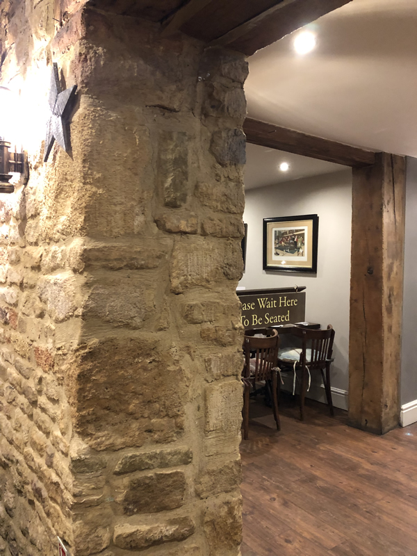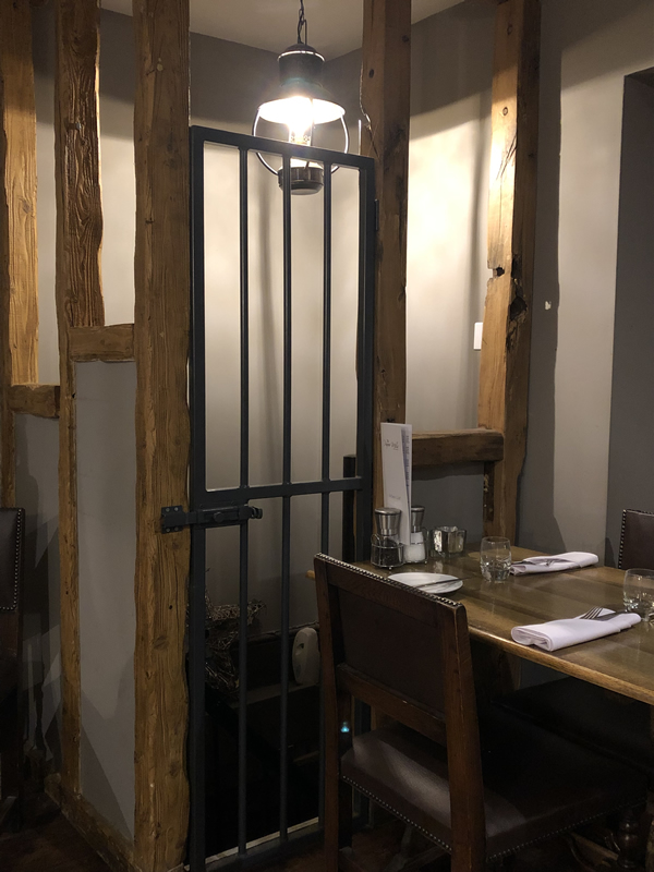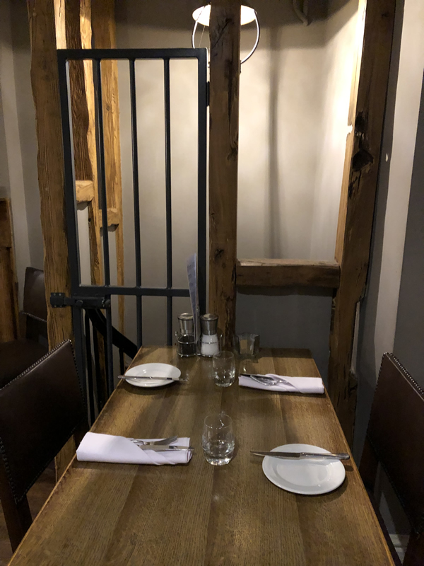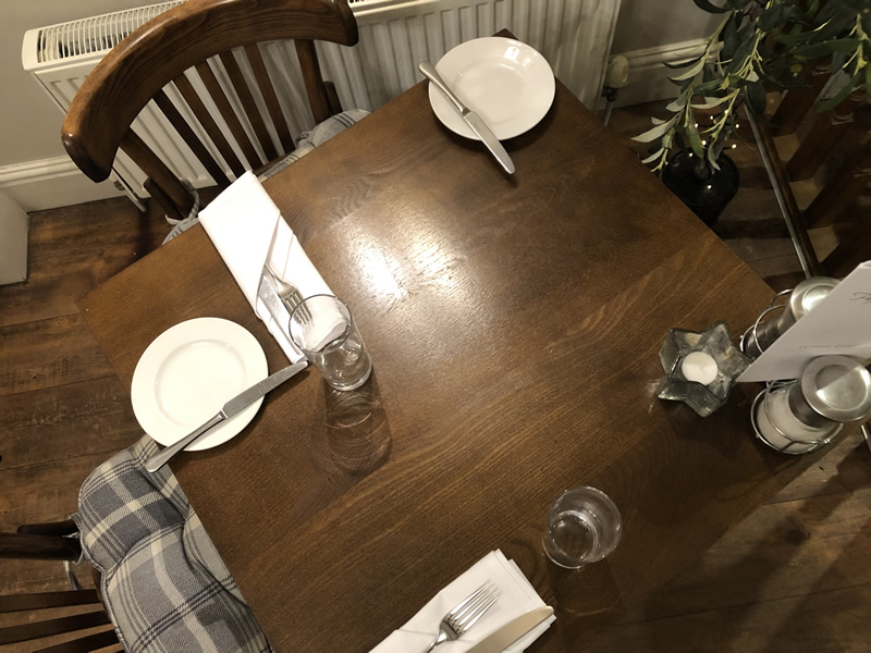We were greeted by a waitress who checked our booking and then offered us a table in the main restaurant area on the other side of the bar and took our orders for drinks, which arrived almost immediately. Time to now look at the menu. It’s great as the pub is partitioned with little open nooks which feel quite private from the rest of the areas so actually feel quite personal. Different old style lamps light the areas enhancing and continuing the warm, comfortable feel you get when you first come in. It must be all the natural surroundings of wooden floors, brickwork and wooden beams. A definite cottage home feel.