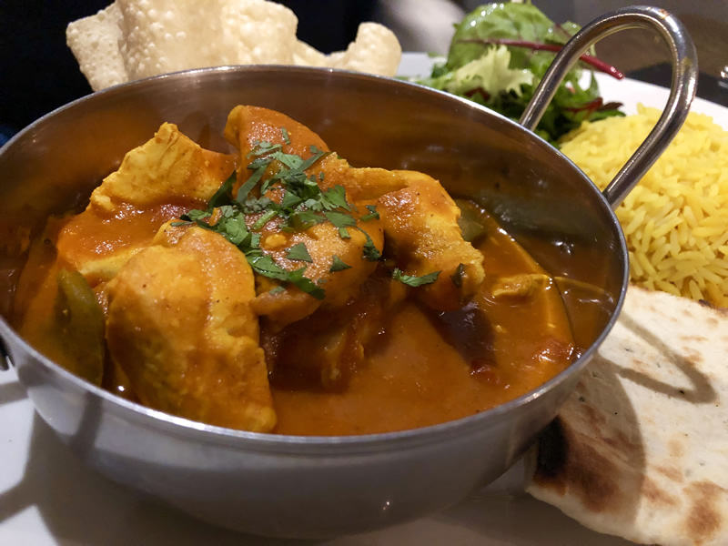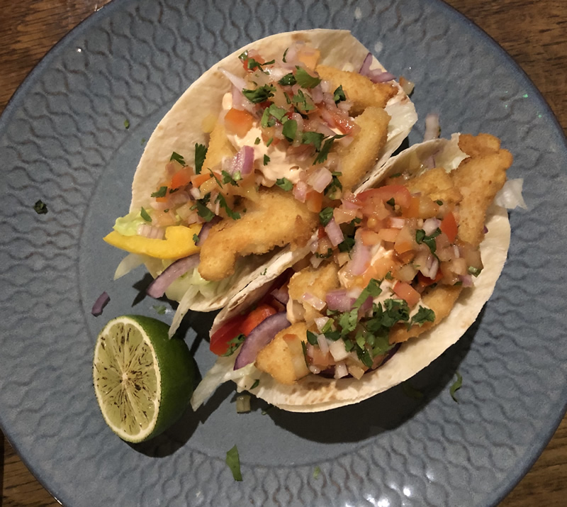 We opted for the Chicken Tortilla Tacos (£8.50) as a starter. This came as two filled tortillas with a crispy chicken fillet in each taco that were non-greasy accompanied by a spicy sauce and salad filling. “Ample for a starter and a spicy little dish“. I was saving myself for dessert.. so moving on…
