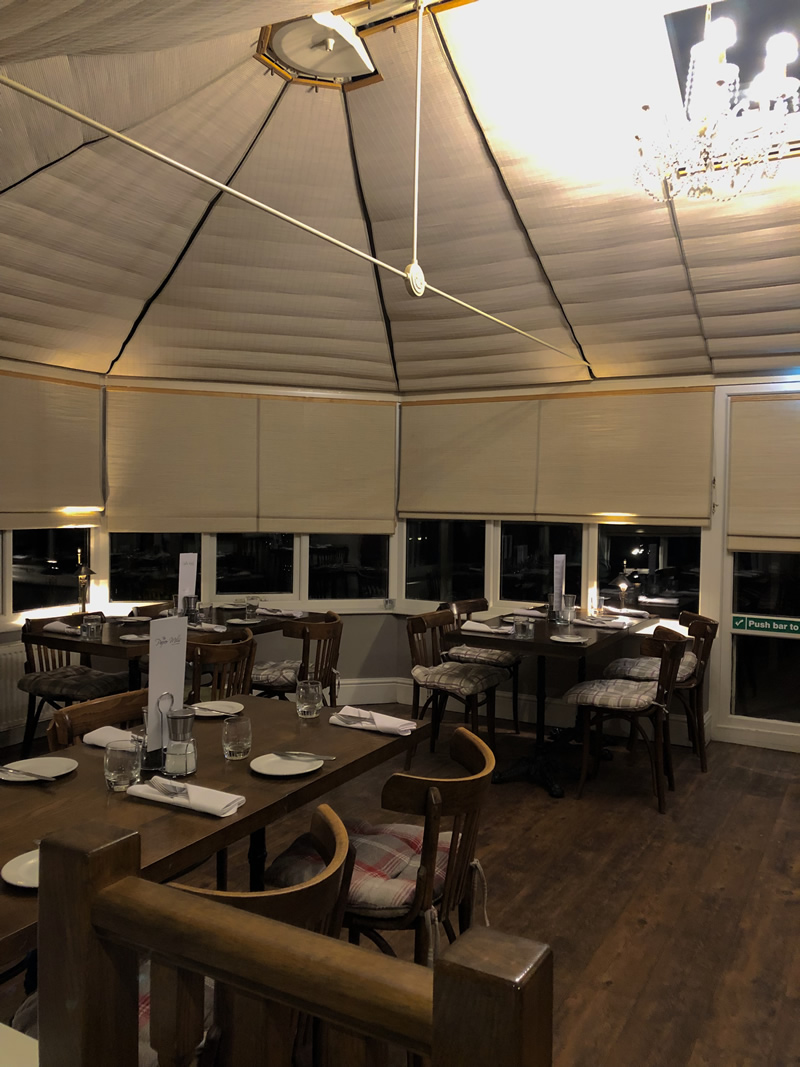 We arrived at 6.30pm and parked immediately in front of the pub. There’s ample of seating to choose from with 9 tables in the bar at the front with a real wood open fire and 14 tables in the rest of the pub including the conservatory. They also have a garden, however, that was closed due to the winter months, but would open once the weather bettered itself.
