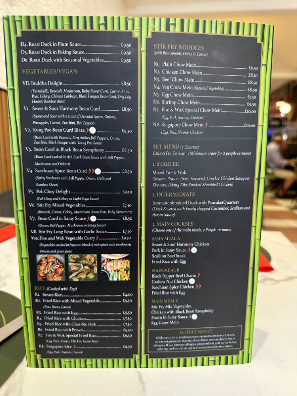 It’s nice and light inside, with pink blossom tree wall decor, panelling and leaf design chairs. Seating is purely downstairs (the spiral staircase has gone) and it looks roomier with the new layout and colours. All dishes were superb and I wouldn’t hesitate to come back for more with friends. I’d recommend you book. www.fireandwok.co.uk