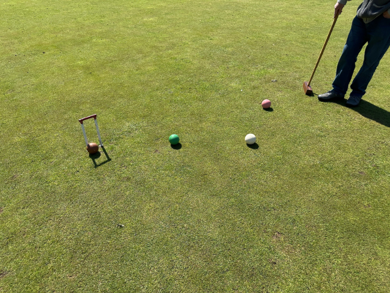 Plenty of information was at hand and we got invited to have a game of Golf Croquet, not that I knew there were two types, I’d just presumed you grabbed your ‘stick’ (flamingo or not – you’ll understand if you’ve watched Alice in Wonderland) and hit the ball through the hoop, however it’s a little more entailed than that. We played as a three to start, so Sue could get us used to what to do. You can play as teams of two or individually.