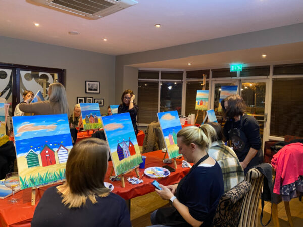 A while ago an event by The Social Canvas caught my eye so I enrolled. Tonight was the night for creating a painted scene of beach huts.