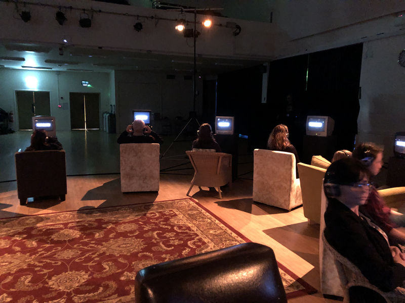 How can I describe this? This was an immersive experience. To be sitting in front of a TV how so many of us do, going through the motions of just watching the news maybe, thinking a few thoughts and then dismissing it – maybe getting up and making a cup of tea. There was none of this here. You were in your armchair watching someone else’s life, experiencing as much as you could of what they were thinking, seeing, feeling. You’re engaged in what’s happening, sometimes in darkness and just listening with your eyes closed, sometimes on your feet…